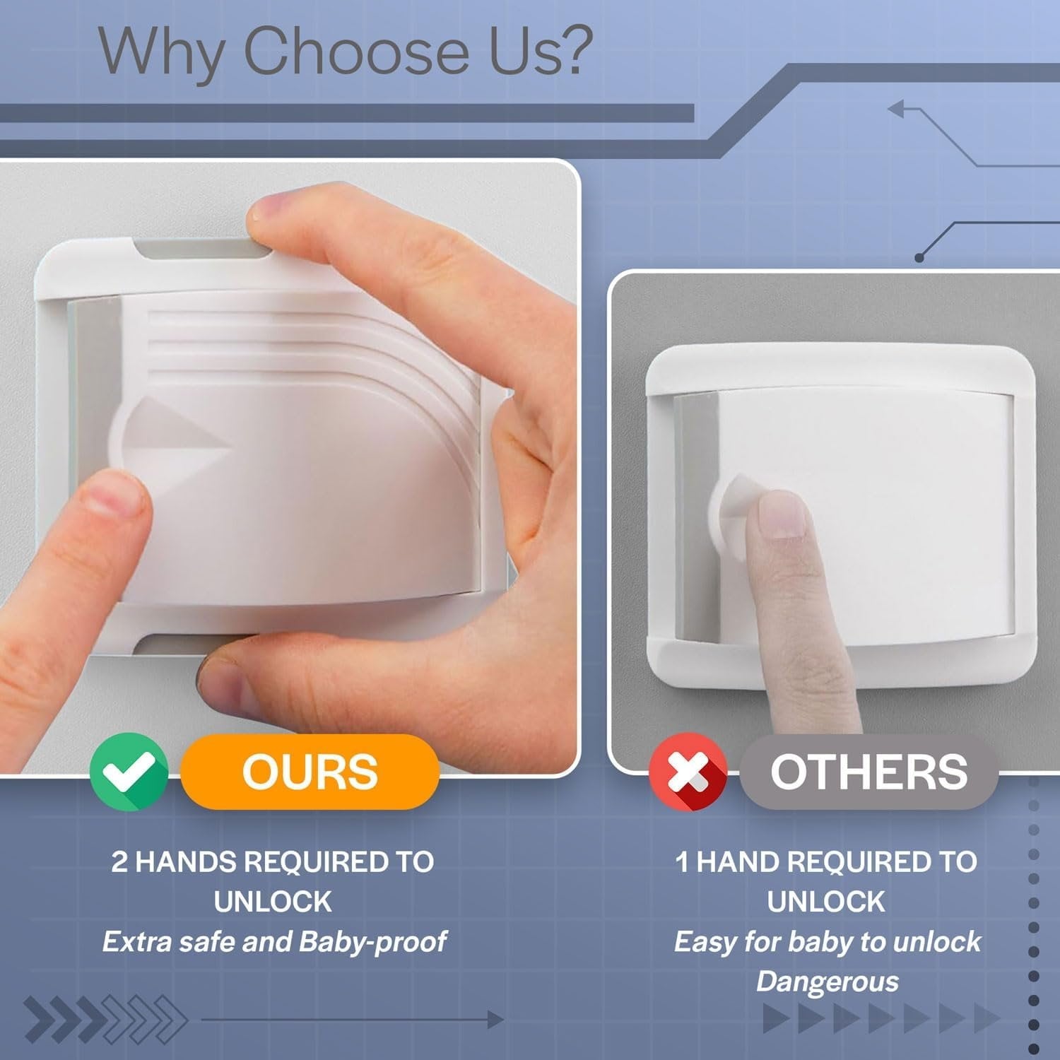 Triple the Protection - Unlike basic locks, our sliding glass door lock requires a 3-factor mechanism to unlock. This pack of sliding window locks offers an extra layer of security thats tough for little hands to figure out.Two-Button Defense - With a dual-button unlock system and a push-down panel, this glass sliding door lock offers a smarter solution to keep sliding doors and windows securely closed.Easy Installation, Maximum Security - Secure your home in minutes with our sliding window locks. Built with strong adhesive for a durable, reliable hold across patio doors, windows, and closets.Kid-Proof Sliding Window Locks - Our sliding glass door security lock has a robust grip and multi-step unlock process, creating a nearly impenetrable barrier for children.Universally Fitted Slide Door Security - Designed to work on a wide variety of surfaces, from sliding glass doors to horizontal and vertical windows, our 2 pack sliding door child lock offers versatile security for any home.