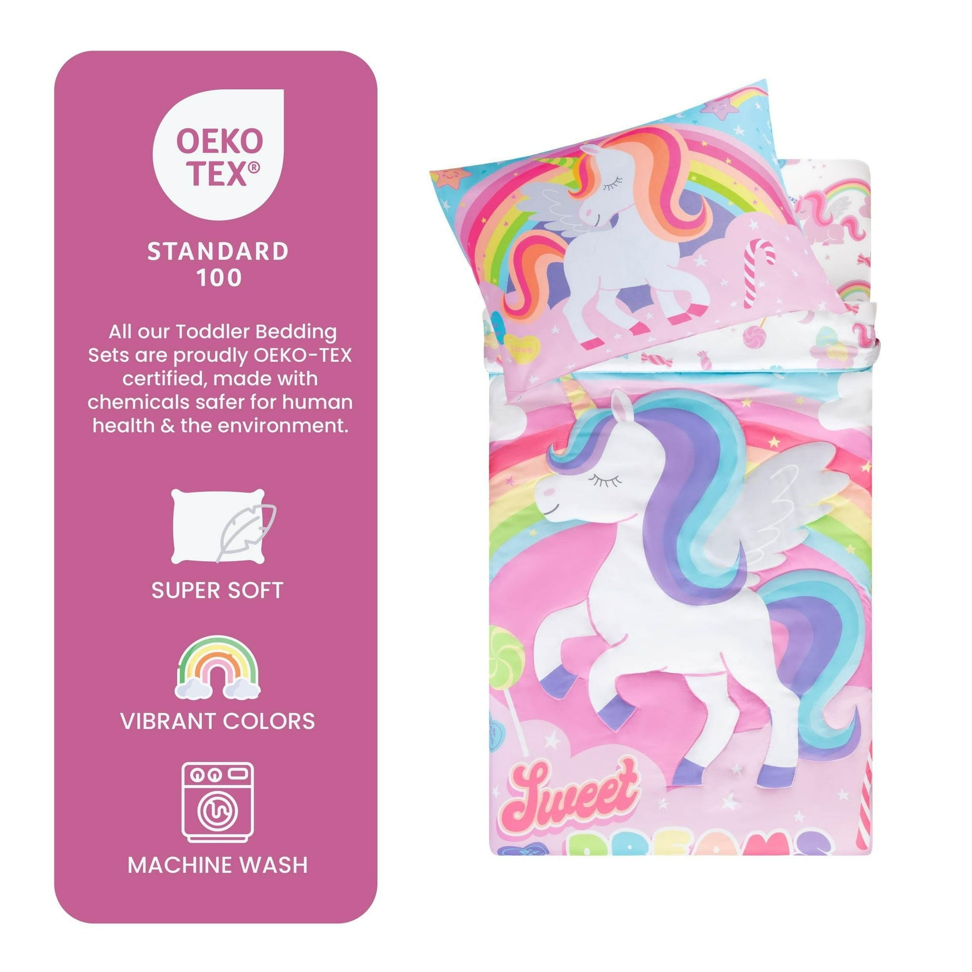 Todays Kids Unicorn Toddler Bedding Set for Girls - 4-Piece Toddler Bed Comforter Sets for Girls, Reversible Comforter & Pillowcase, Flat Sheet, Fitted Sheet, Breathable & Super Soft Microfiber